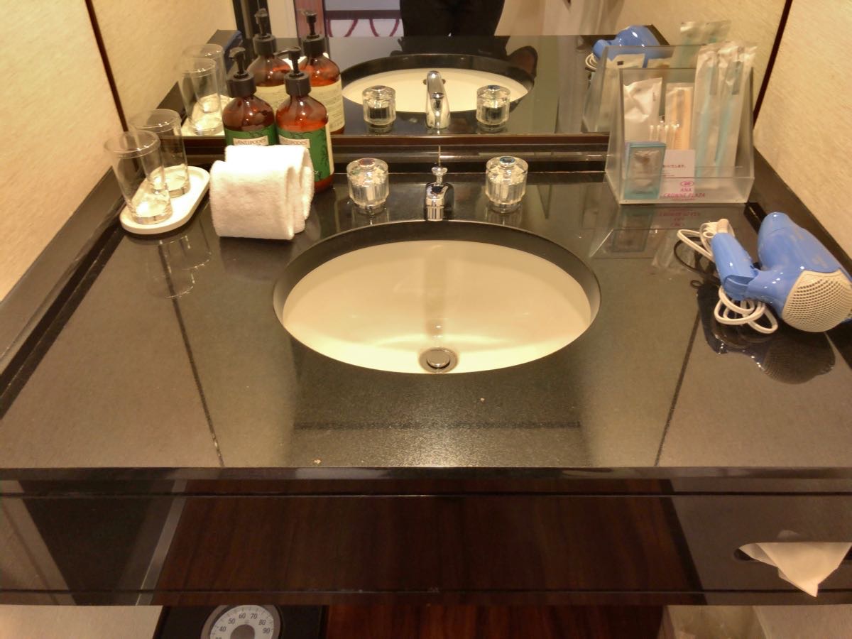 国内ホテルでは珍しく洗い場付きのバスルームとなっています。非常に贅沢ですね。ホテルのバスルームは昔はよく使っていましたが、最近は自宅の湯舟の方が快適なので、あまりホテルでお湯を貯めることはなくなってしまいました。とはいえ、いいですね。