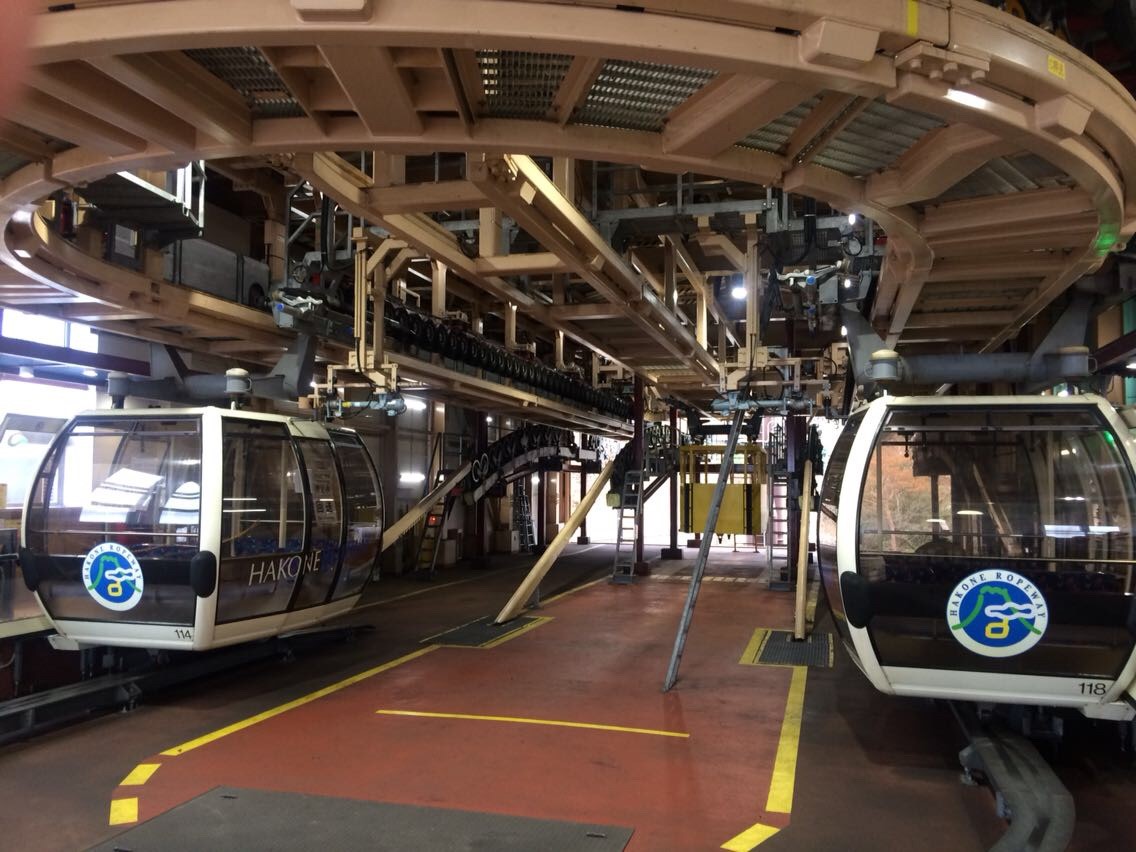 この次は、大涌谷から芦ノ湖へ箱根ロープウェイを使って移動する。完全にスキーのゴンドラではあるが、これはこれでいい乗り物として適している。