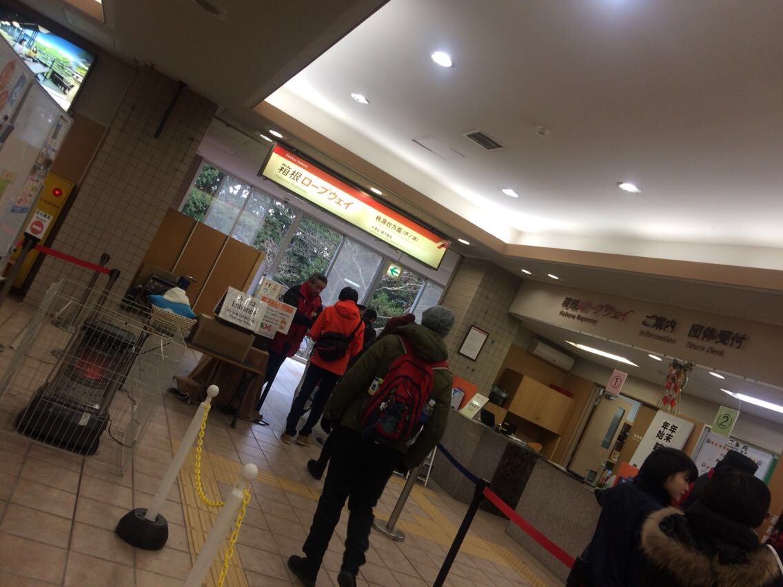 箱根ロープウェイも、箱根登山鉄道も、今回事前に購入しておいた箱根フリーパスで乗車することができる。大晦日という日程でもあったせいか、外国のお客さんが非常に多く、さらに日本人のお客さんもまたさらに多いという状況でかなりの混雑ぶりであったが、ほとんど待ち時間なしでロープウェイに乗ることができた。